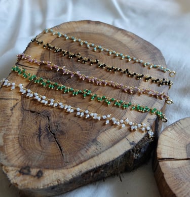 "Merci beaucoup pour ce magnifique bracelet. Et un merci encore plus grand pour le petit cadeau. Je suis contente d'avoir découvert ton travail que je trouve très beau. J'espère pouvoir bientôt passer de nouveau commande pour un collier et des boucles d'oreilles. À très bientôt peut-être"