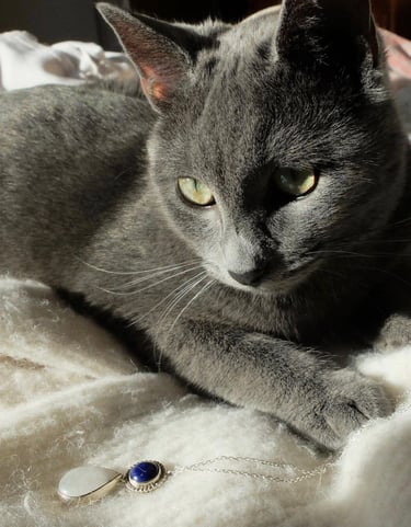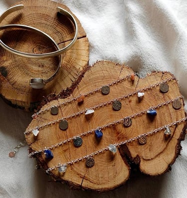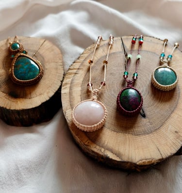 "Jeanne est très attentive à ses créations et au bien-être des gens. Son collier, en ma cramé et sa pierre d' Amétrine est unique, en plus de ça, un petit cadeau en plus, un petit bracelet avec une gemme de quartz rose... Merci à toi."